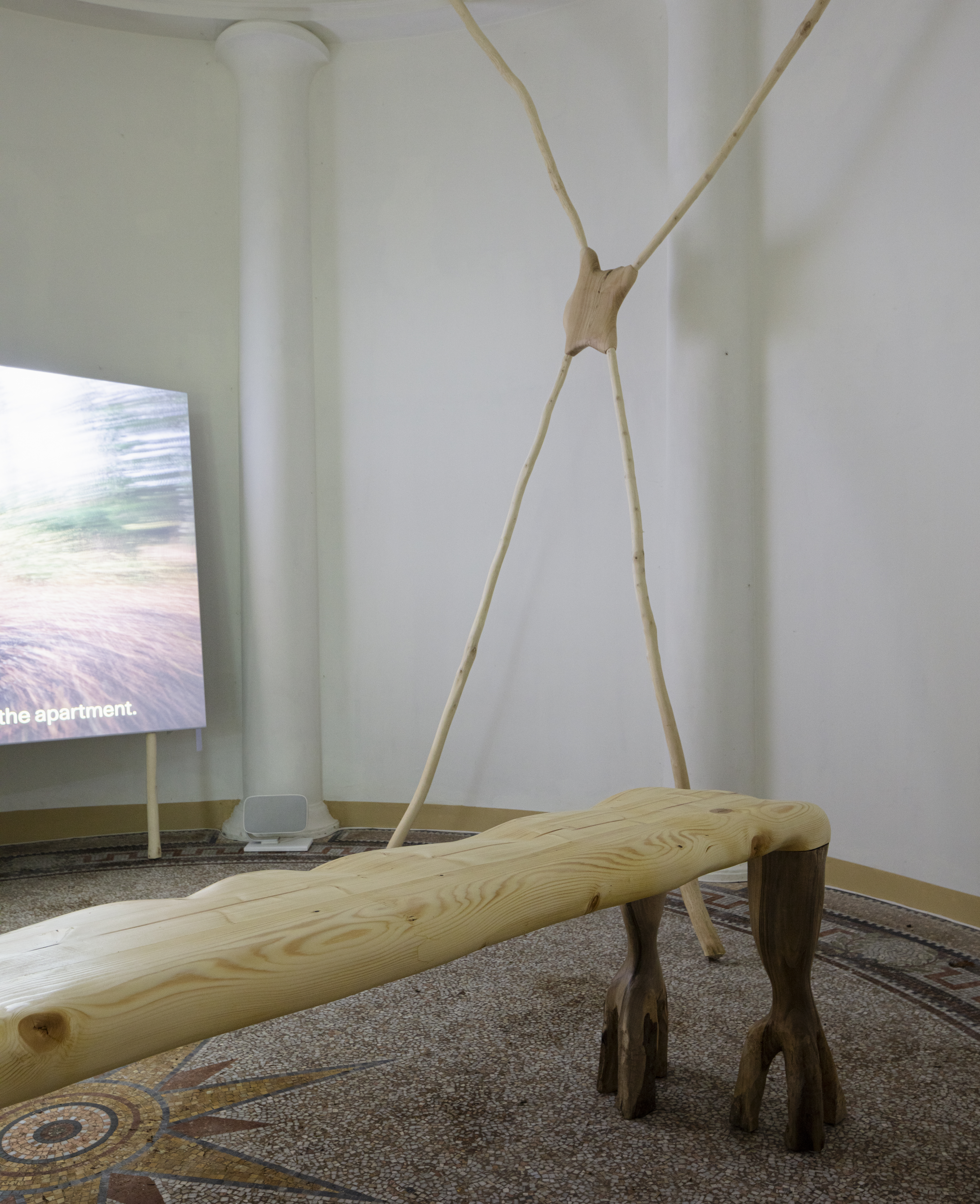 Film installation, 2K Video, 21’30“, objects made out of spruce, nutwood, ash, hazelnut, poplar and linen